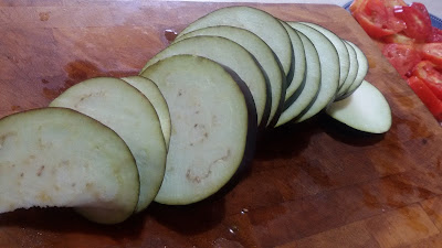 Nel frattempo pulite anche la melanzana, tagliatela a fette e cospargete di sale anche questa.