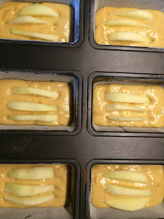 Ho tagliato la mela a fettine e ne ho inserite tre in ogni mini plumcake