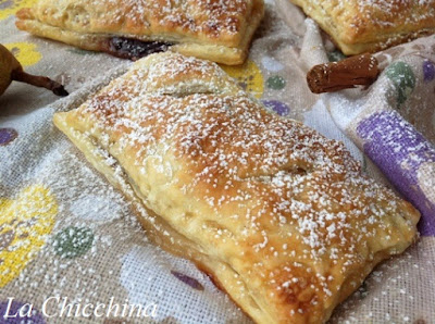 Ho pensato a degli strudel monoporzione con pere e nocciolata: in questo caso li ho fatti con la pasta sfoglia per motivi di tempo, ma sono buonissimi se fatti con la pasta strudel che potrete realizzare seguendo la ricetta dello strudel di mele