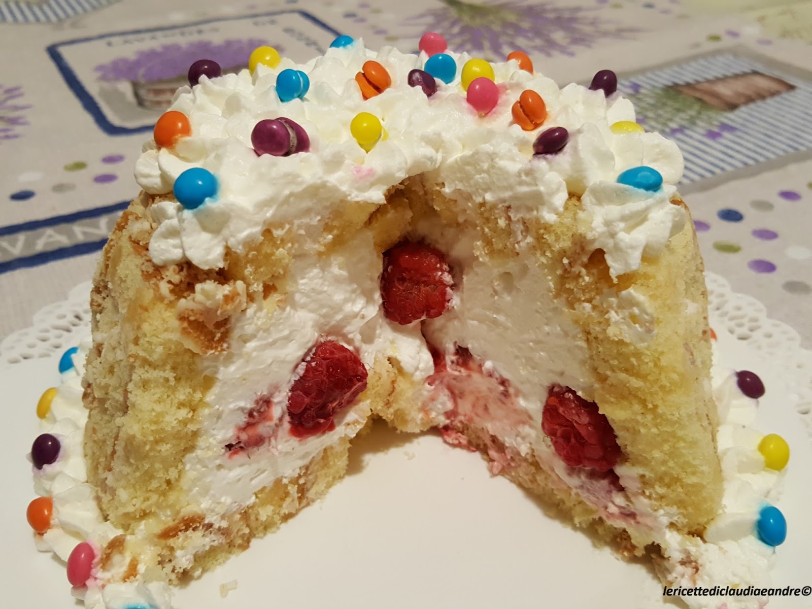 - Tirare fuori dal frigo, capovolgere su un vassoio e decorare con la restante panna montata e con dei confettini di cioccolato colorati.