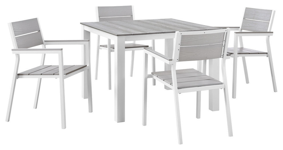 Modway Maine 5 Piece Outdoor Patio Dining Set In White And Light Gray