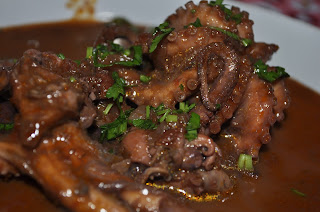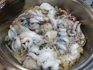 Ingredienti : 1 kg di moscardini puliti, 2 pomodori maturi, passata di pomodoro, vino bianco, aglio, sale, pepe, prezzemolo, origano.