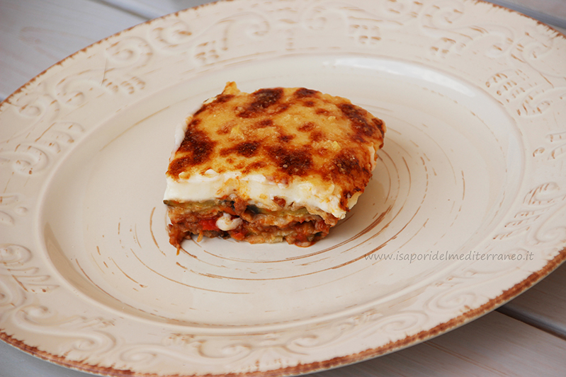 La moussakà o mussacà è un piatto tipico della cucina greca; una specie di parmigiana italiana, violentata dall’influenza gastronomica balcaniche e medio-orientale. La besciamella completa l’internazionalizzazione di questo piatto che a dir la verità non mi ha conquisto, anche se l’ho un pò napoletanizzata. Niente da fare la besciamella messa così stona al palato, almeno per i miei gusti. Le melanzane sono state fritte col metodo napoletano (‘ndurat e fritt), una tecnica che permette alla melanzana di non impregnarsi di olio.