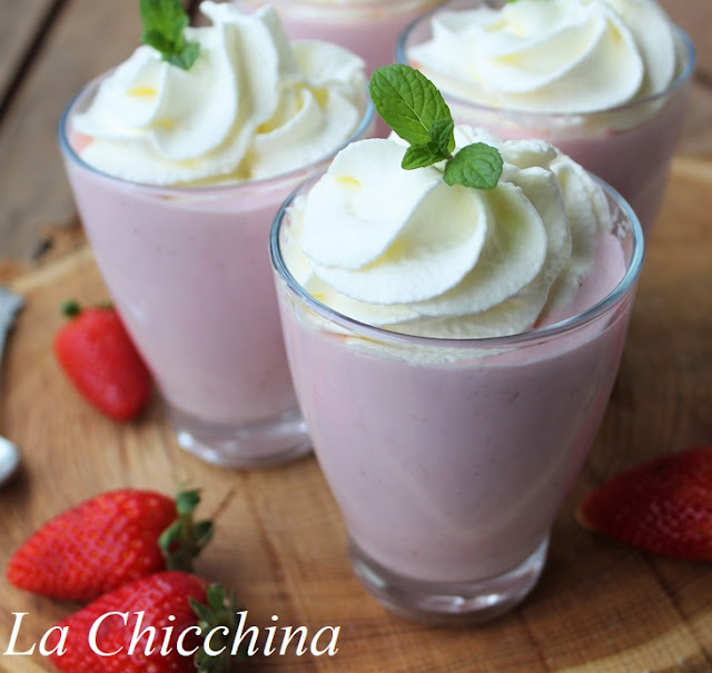 Quello che vi propongo oggi, la mousse leggera con le fragole, è davvero goloso, profumato e vanta una caratteristica preziosa, la leggerezza: ha pochissimo zucchero e una piccola quantità di panna, oltre agli ingredienti principali, ossia fragole e yogurt greco.
