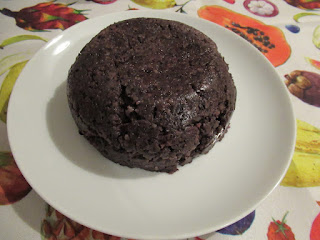 Cuocere il riso, frullarlo aggiungendo un po’ della sua acqua di cottura, unire tutti gli ingredienti e mescolare bene. Cuocere a fuoco medio, continuando a mescolare e quando inizierà a staccarsi dalle pareti proseguire la cottura per qualche minuto ancora continuando a mescolare. Versare in una ciotola di vetro, livellare la superficie e far raffreddare, conservare in frigo per almeno 2 ore. Buono da mangiare così oppure grigliato a fette qualche minuto per lato.
