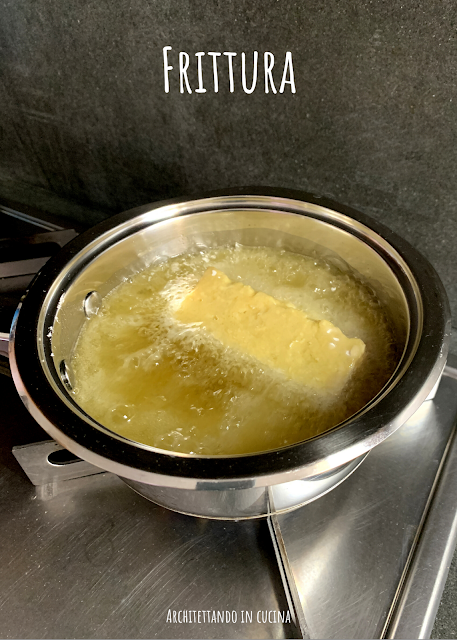 Come si frigge? Nel modo classico: tanto olio di arachidi in pentolino piccolo con il fondo spesso a 170°. E’ importante usare un pentolino piccolo per fare la frittura “profonda”, in modo che il fritto galleggi. Il pentolino deve essere piccolo, altrimenti sareste tentati di mettere molti pezzi insieme, che abbasserebbero di colpo la temperatura dell’olio e il pane assorbirebbe l’olio. Invece alla giusta temperatura, fa la crosticina che impedisce all’olio di entrare e la vostra frittura sarà leggera e non unta.