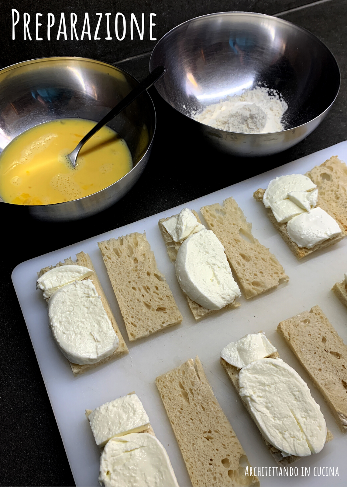 La mozzarella in carrozza è un piatto campano nato più o meno nell’Ottocento, come recupero di pane raffermo e mozzarella del giorno prima. In un epoca in cui la mozzarella non stava in frigo, andava consumata al massimo il giorno seguente, ma aveva naturalmente perso freschezza. Così il popolo inventa questo piatto. Quindi dopo questa premessa è ovvio che la mozzarella in carrozza non si fa con il pan carré, ma con il pane raffermo (il top è usare quello campano di grano duro) e per lo stesso motivo, il tipo di mozzarella fiordilatte o di bufala è assolutamente ininfluente.