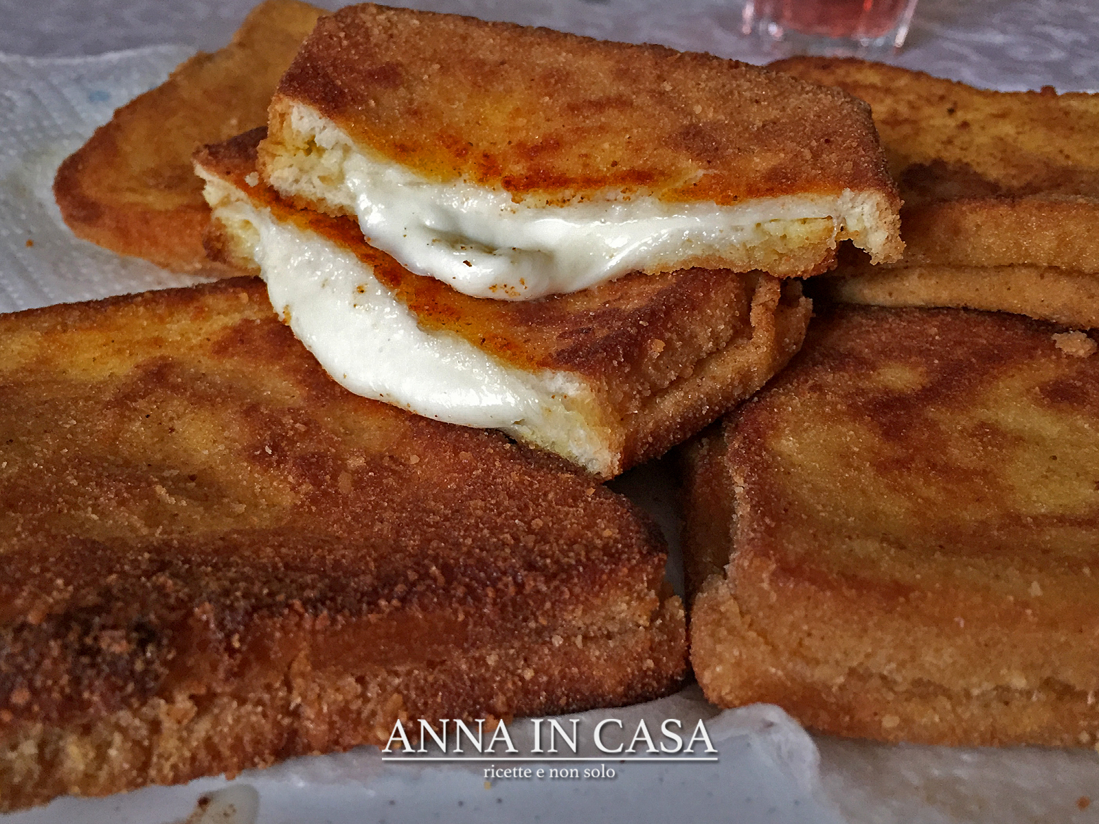 Affettare le mozzarelle e distribuire le fette su metà delle fette di pane, lasciando liberi i bordi.