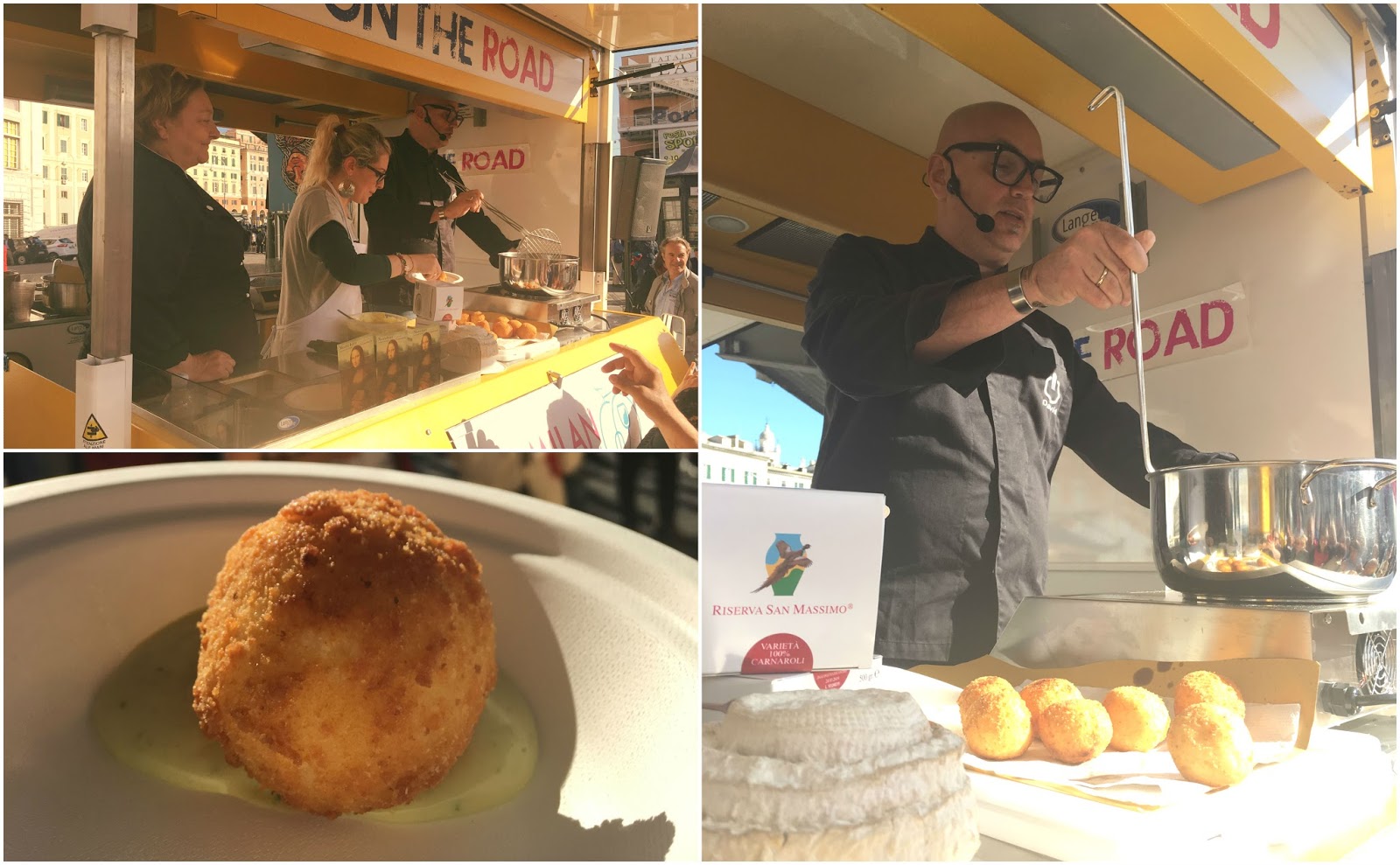 Un arancino per riassumere #MSRGusto: Riso Riserva San Massimo, formaggio Montébore di Vallenostra (presidio Slow Food) e maionese al pesto.