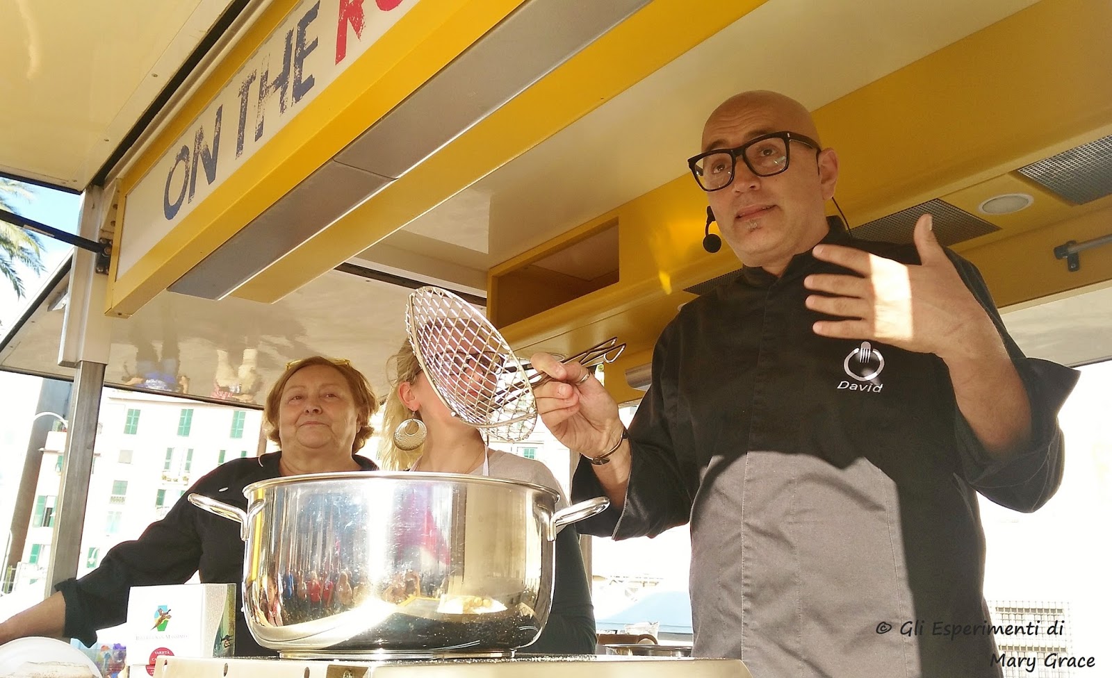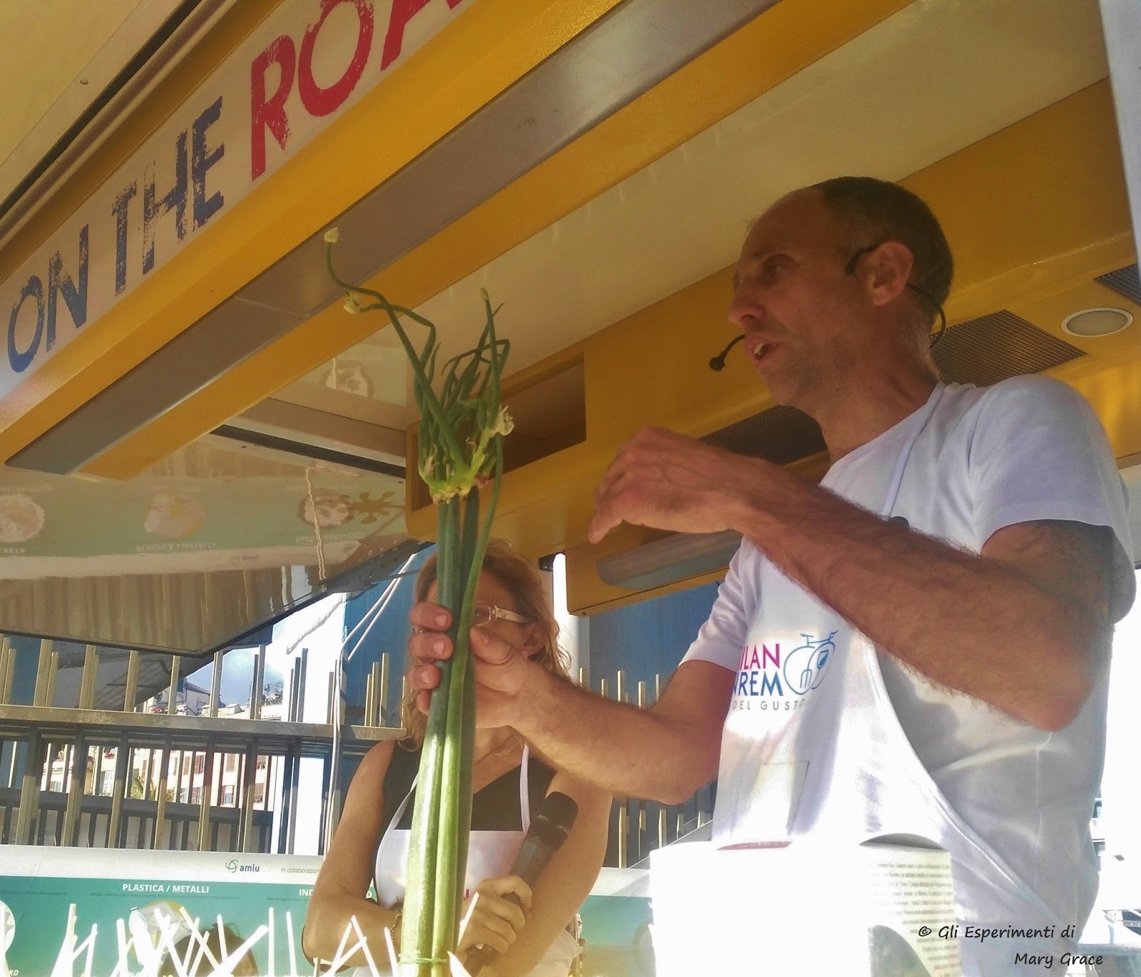 Al nutrito pubblico venuto ad assistere ai cooking show targati On the Road, Marco Damele ha regalato la storia di un antico ortaggio per molto tempo scomparso dalle coltivazioni locali e da qualche anno reintrodotto nelle coltivazioni del ponente ligure, in particolare nell’entroterra imperiese