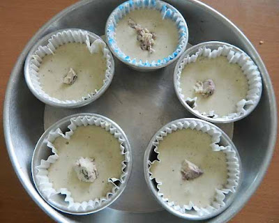 Mettere il composto ottenuto negli stampi da muffin riempendoli per la metà,