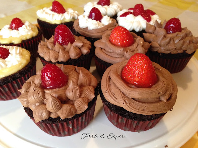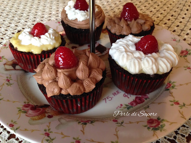 Ricoprite ora i vostri dolci con le creme preparate, abbinandole come più preferite, decorando con lamponi e fragole (ricordatevi la gelatina per evitare si anneriscano).