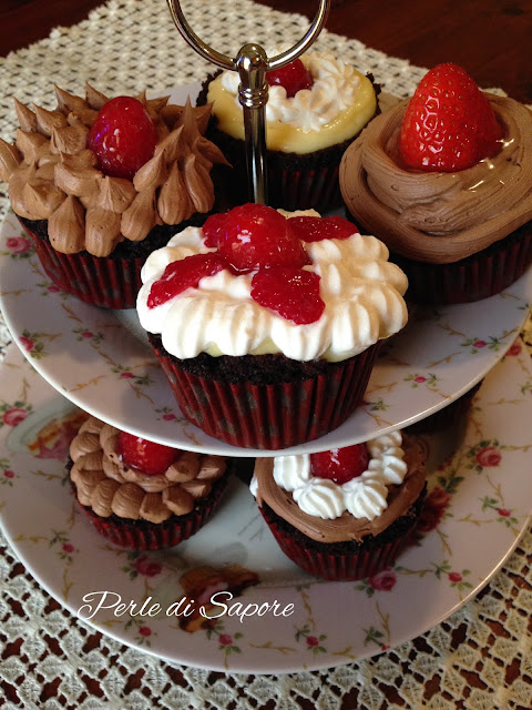 Ora bagnate con l’alchermes le cupole che avete ritagliato dai muffin, e usateli per creare altri dolcetti, riempiendoli con le creme preparate.