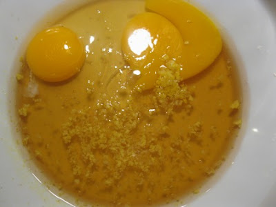 Mescolare le uova con il miele e la buccia grattugia di un limone bio..