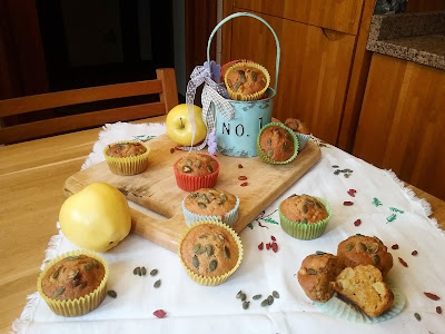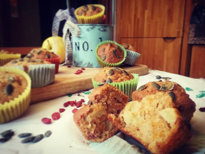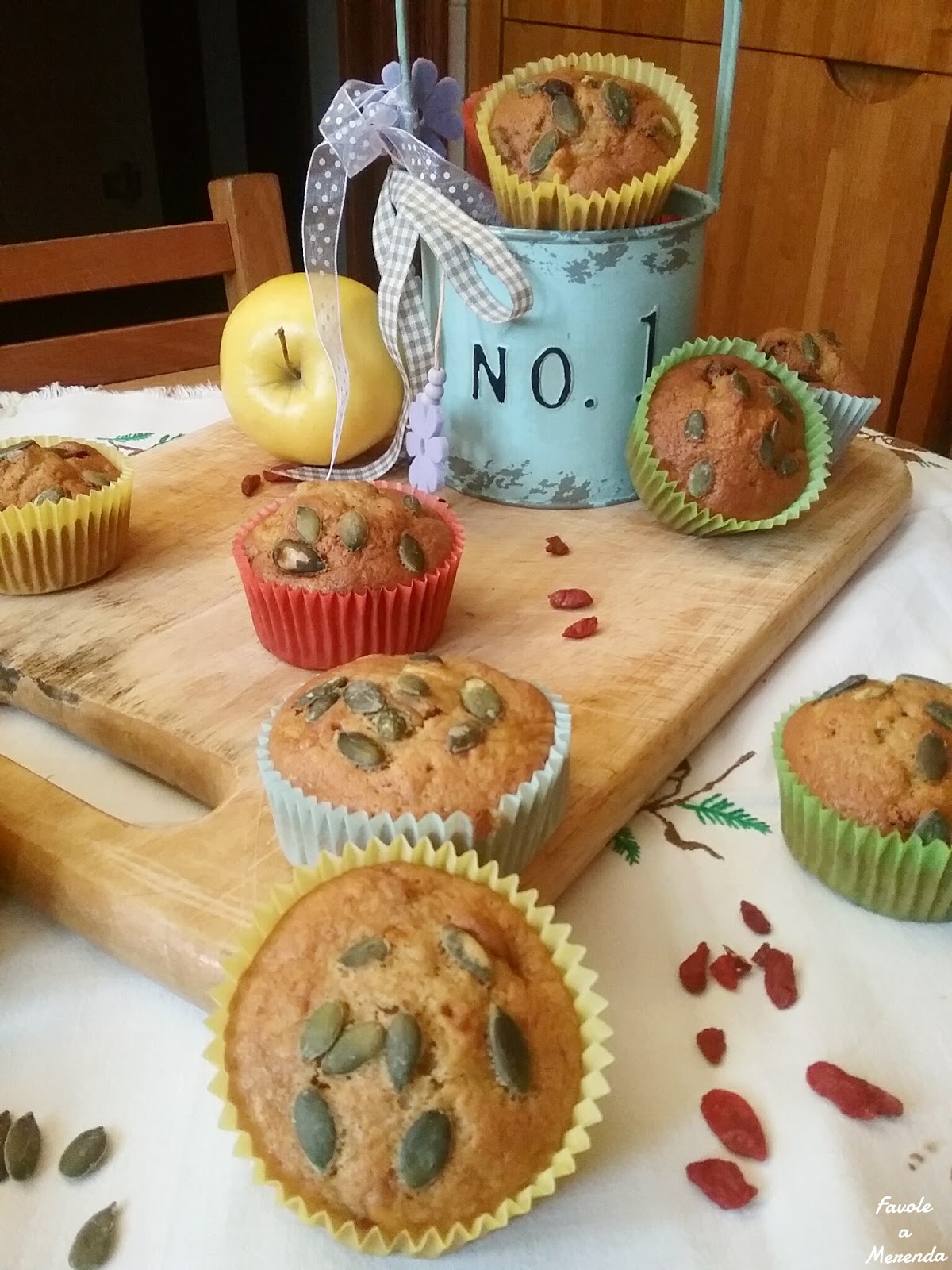 Si avvicinò e dolcemente offrì loro dei dolcetti profumatissimi appena sfornati: Muffin alla zucca con mele e bacche di Goji…quelle che il piccolo aveva raccolto quella mattina nel giardino di casa senza accorgersi che tra gli intricati rami e il fogliame dei cespugli si nascondeva un piccolo pozzo incantato.