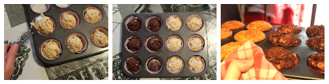 Sistemate dei pirottini di carta negli stampi della teglia e aiutandovi con un porzionatore da gelato riempite i pirottini, Se lo fate con un cucchiaio, ricordate di non superare mai i 2/3 dello stampo.