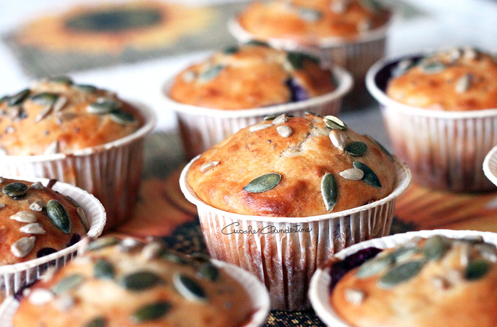 Cuocete in forno preriscaldato, ventilato, per 25/30 minuti a 180°C. Il tempo di cottura dipende dal forno. Per maggiore sicurezza, quando i muffin cominciano a dorarsi in superficie, inserite uno stuzzicadenti: se restano attaccati grumi di pasta cotta vorrà dire che sono pronti (se la consistenza è liquida no). Tenete presente che lo stuzzicadenti non sarà mai troppo asciutto perché questi muffin contengono frutta fresca. Anzi: aspettatevi che i mirtilli “esplodano” e facciano come dei bei crateri golosi sui vostri muffin. Tutto normale, non preoccupatevi.