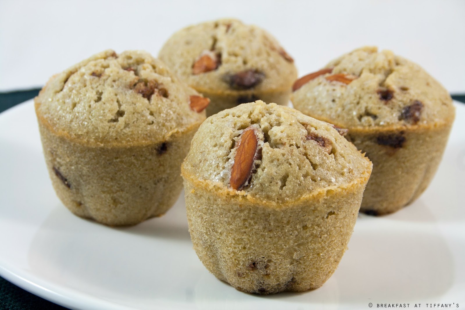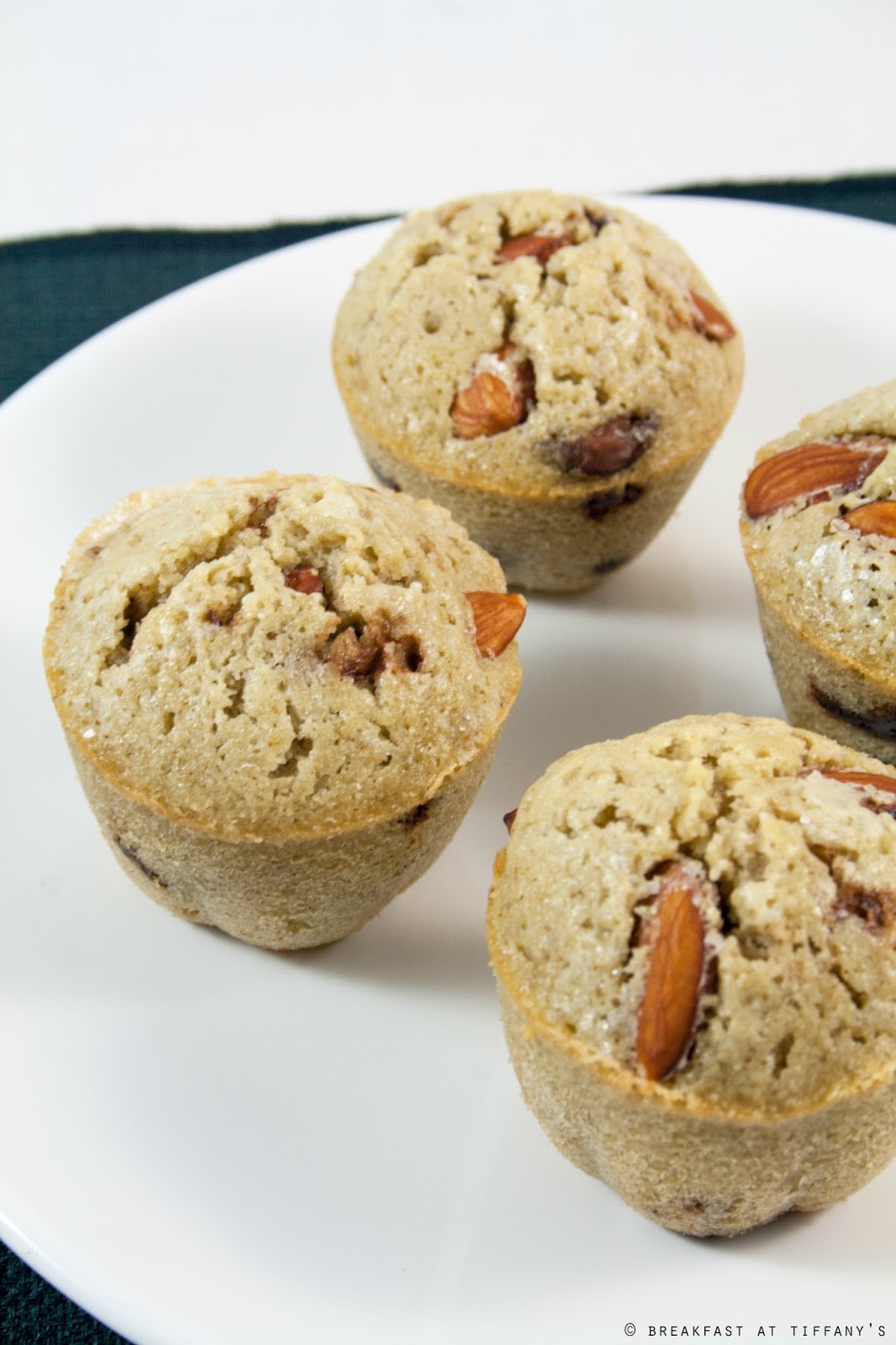 Aggiungere 2-3 mandorle a muffin e poi infornarli per 15-20 minuti finché non saranno gonfi.