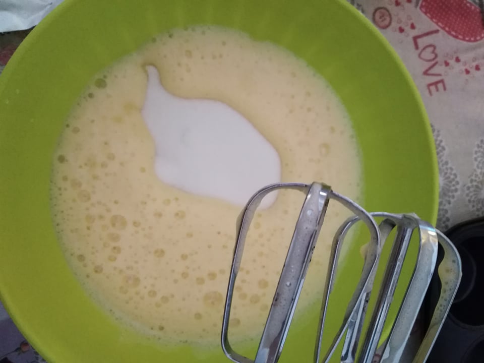 Montate le uova con lo zucchero, fino ad ottenere un composto spumoso.