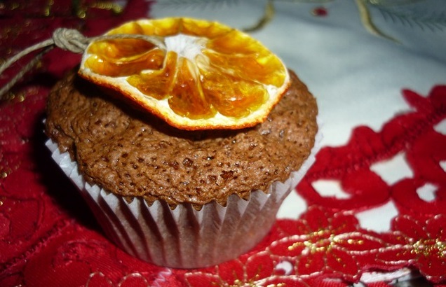 I muffin si possono decorare con le fette di arancia essiccate (nell’essiccatoio, a bassa temperatura nel forno o sulla stufa), magari legate con uno spago, per poi essere appese all’albero di Natale… dopo che ci si è mangiati i muffin!