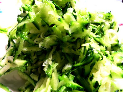 Per prima cosa grattugiamo le zucchine..
