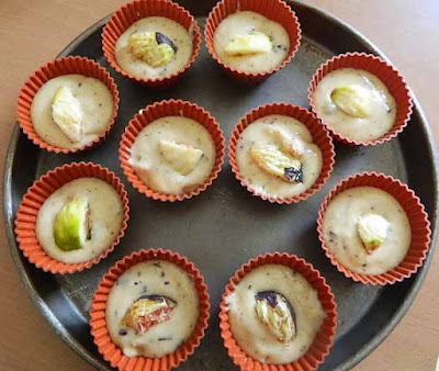 Amalgamare bene tutti gli ingredienti e versare il composto così ottenuto negli stampini oliati e infarinati, se non sono di silicone,che riempiremo per i 2/3.