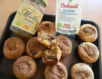 Muffin Miele di Castagno fichi e cioccolato soffici e golosi grazie a Dolcedì e al Mielbio Castagno della Rigoni di Asiago.