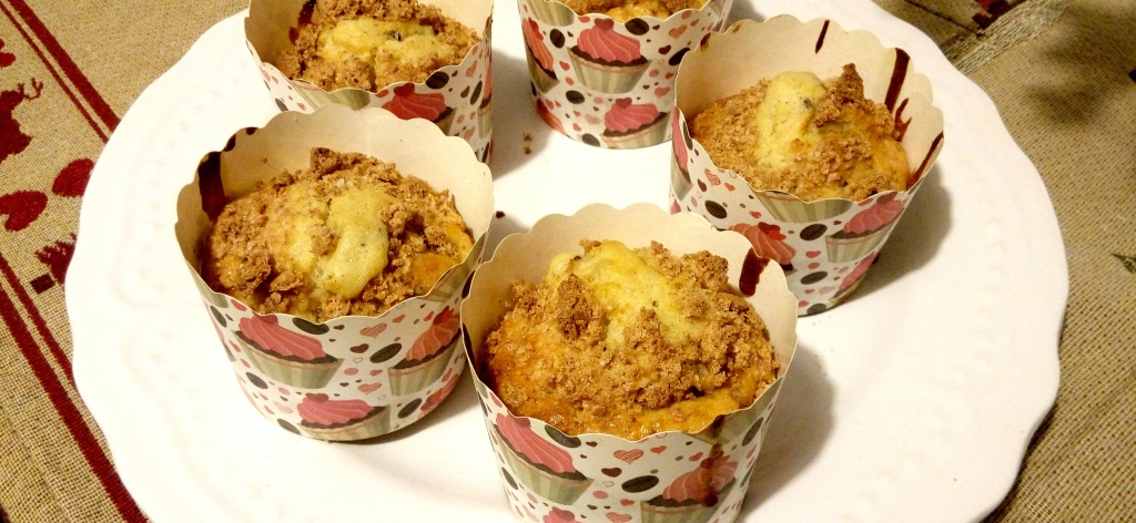 Sbriciolare gli amaretti e versarli sui muffin.
