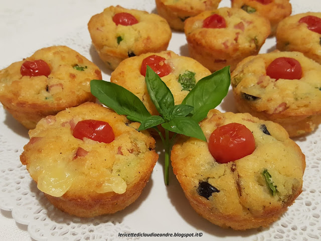 Muffin salati con zucchina, formaggi, olive e wurstel affumicato