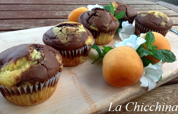 Si tratta di muffin morbidi e soffici, variegati al cioccolato e arricchiti con albicocche mature…una vera delizia…che però non vedrà l’alba di domani!!!! Dai che vi racconto come si preparano (oltretutto sono facili e richiedono poco forno)!!!!!!!