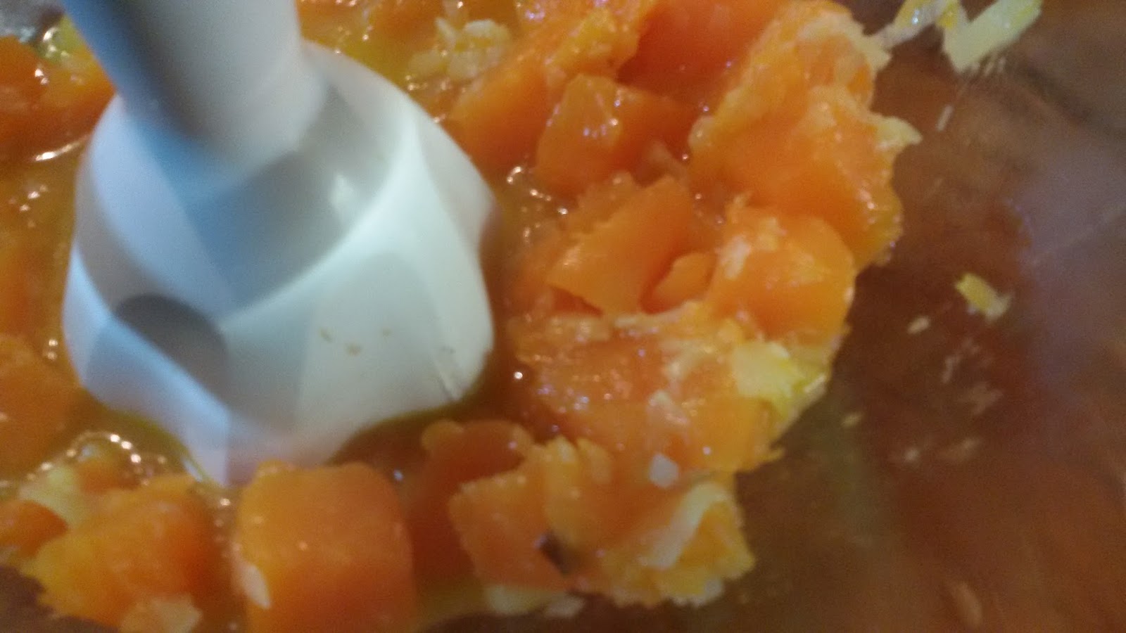Quando la zucca e il porro si saranno freddati frullateli con un minipimer