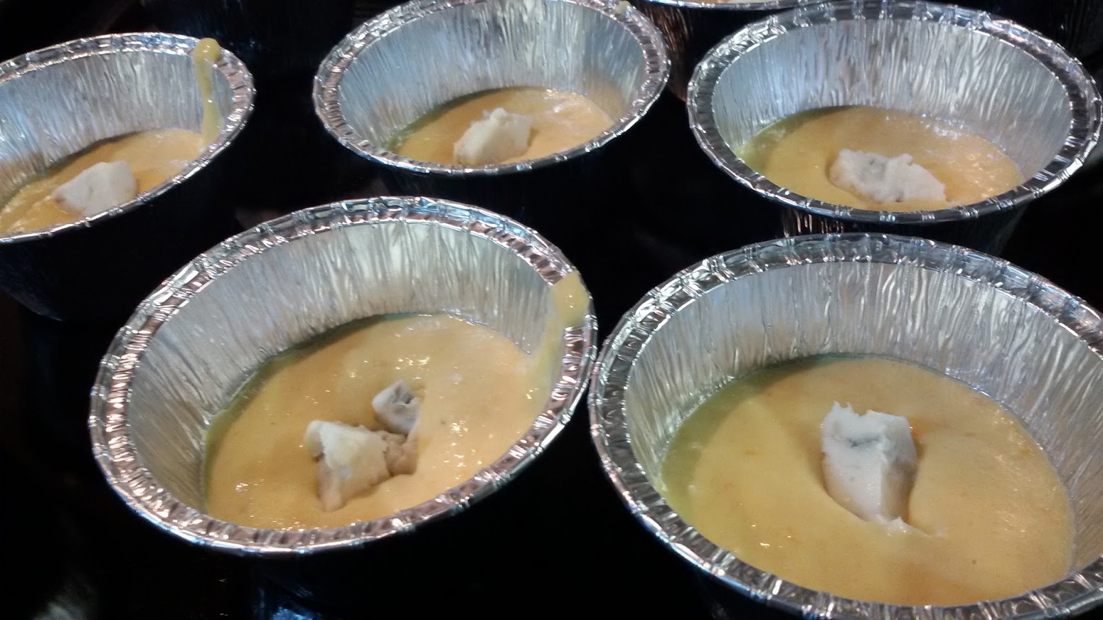 Riempite con un paio di cucchiaiate gli stampini imburrati (per no perchè erano in silicone), mettete il gorgonzola al centro premendolo leggermente verso il fondo (ma senza toccarlo)