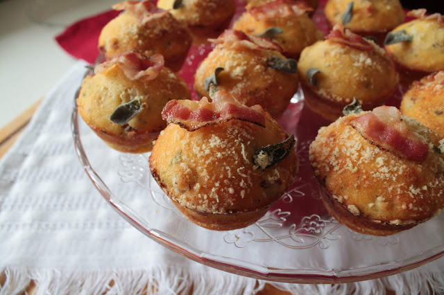 - Appena prima di servire aggiungiamo un pezzetto di pancetta tesa rosolata e serviamo i muffins tiepidi.