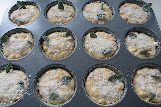 - Versiamo il composto negli stampi, decoriamo con le foglie di salvia, il formaggio rimasto e inforniamo nel forno preriscaldato a 180° per circa 15 minuti.