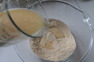 - In un’altro recipiente sbattiamo l’uovo e aggiungiamo l’olio di semi e il latte.