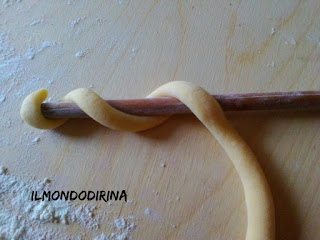 Con l’impasto formate dei bastoncini e con un legnetto di bambù o un mestolo di legno formate le nacatole.