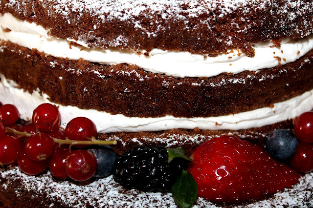 E’ una meravigliosa torta priva di copertura, dove i golosi strati ricchi di crema al mascarpone mettono in risalto tutta la sua bontà, decorata con frutta fresca e fiori diventa elegante, raffinata e di grande effetto!!!