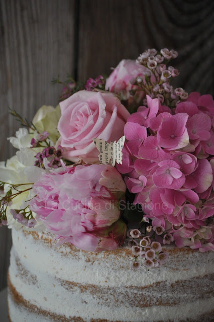 Eccola qui. Leggera, soffice e bianca come una nuvola. Impreziosita da peone, rose, ortensie di rosa differenti e da leggere farfalle che portano al cielo i miei desideri, con la speranza che vengano realizzati.