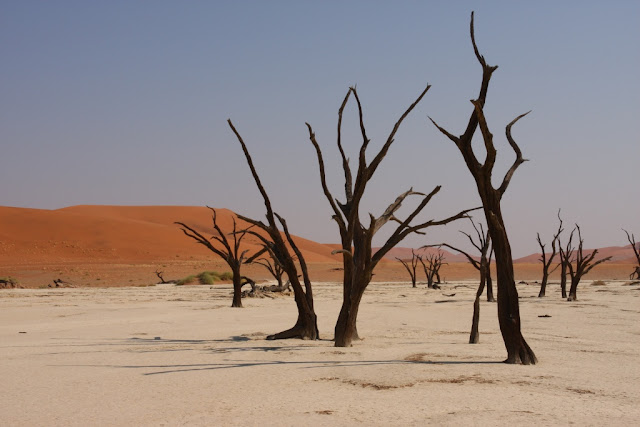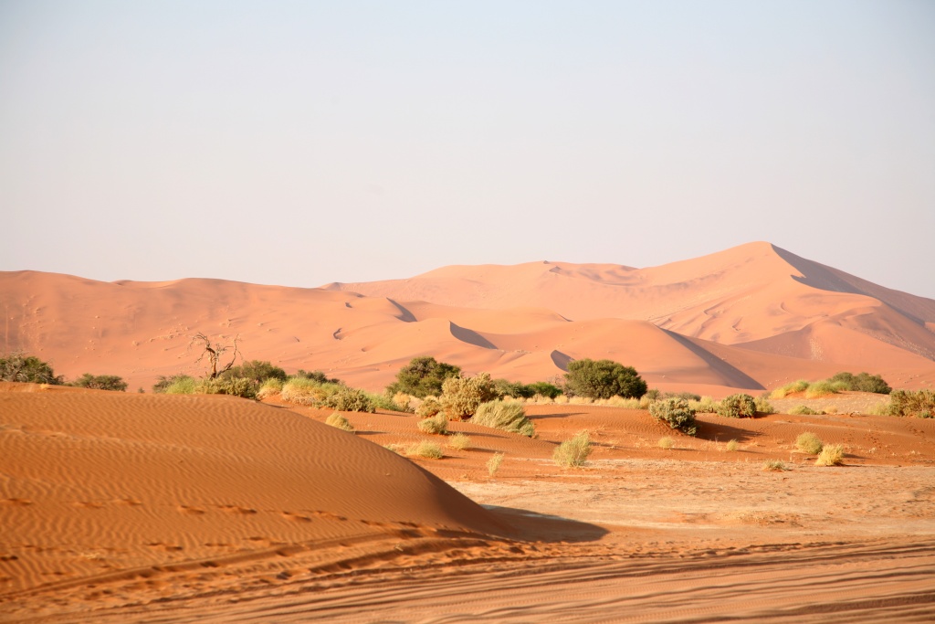 Qui si trovano alcune delle dune più famose e conosciute: Big Daddy alta 380 m, la Duna 45 la più fotografata e Sossusvlei. Bellissimo scalarle anche se decisamente faticoso per l’altezza.Questo a causa di un fiume che ha mutato il proprio corso a causa del movimento delle dune. Il clima arido ha contribuito a preservare i tronchi degli alberi creando un netto contrasto con la sabbia rossa delle dune del deserto.
