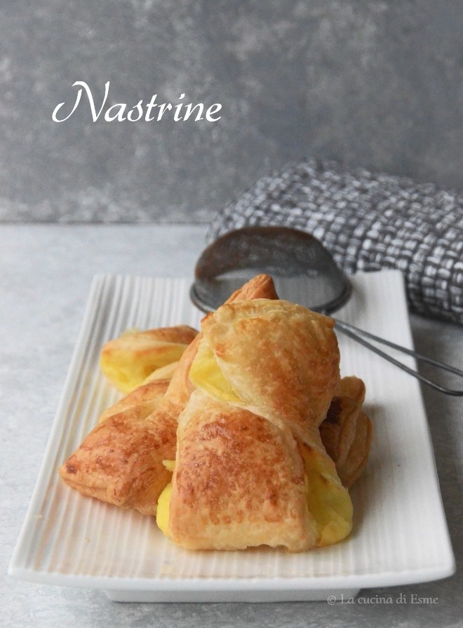 Non sono scomparsa, e non mi è successo nulla di grave sono solo stata totalmente sopraffatta dall’improvvisa ondata di caldo afoso. Un giugno così caldo stento a ricordarlo. Non c’è ancora aria di vacanza, siamo nel ritmo normale delle cose tra il lavoro ed i vari impegni quindi queste temperature eccessive sono ancor più destabilizzanti, almeno per me. Non riesco a fare nulla, oltre il necessario ovviamente, se poi a questo vogliamo aggiungere un problema di denti che mi sta facendo incontrare il dentista, una volta alla settimana, già da tre settimane …! Comunque, sarà il caldo, saranno i denti, ma questi giorni sono proprio out! E a quanto leggo si prospetta un aumento delle temperature per i prossimi giorni … la mia pressione bassa mi costringerà a vivere di aria condizionata! Però, caldo o non caldo, al dolcetto della colazione non rinuncio, ma deve essere veloce e con cottura breve, quindi pensando a idee sprint, vi lascio queste Nastrine homemade che ovviamente potrete rendere ancora più veloci utilizzando, al posto della crema pasticcera, della crema spalmabile al cioccolato o della marmellata.