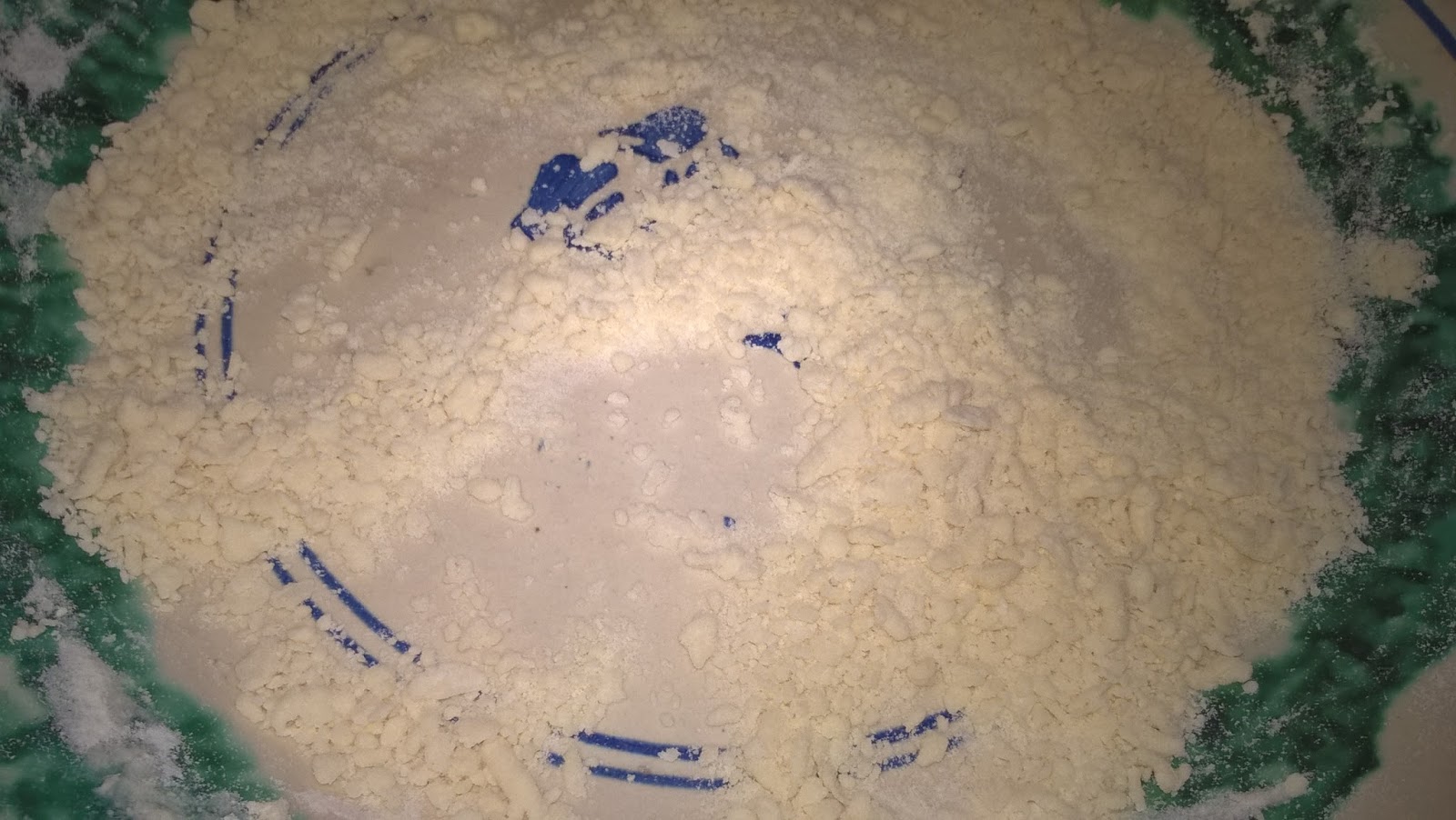 Vedrete che si formeranno subito delle particelle di pasta; passatele in un altro piatto e continuate l’operazione con altra semola e acqua/uovo. 300 g di semola basterà per 4/5 persone.