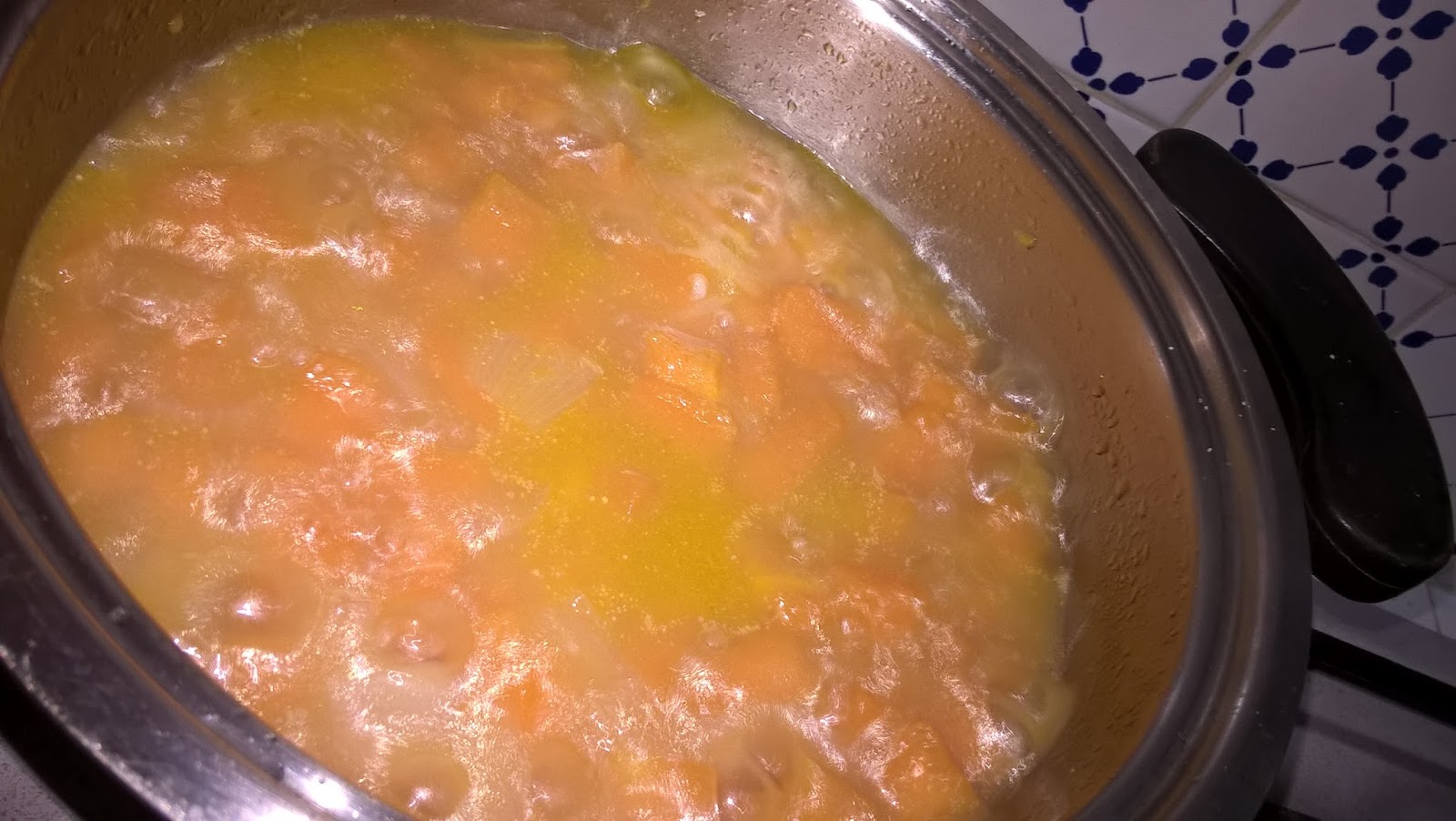 Intanto fate cuocere la zucca (400 g circa) con una cipolla e olio extravergine d’oliva. Dopo averla rosolata aggiungete un poco di brodo vegetale per completare la cottura.