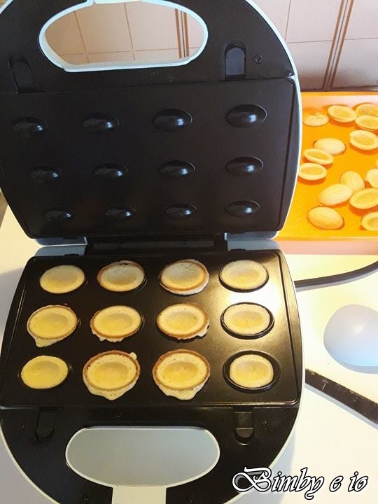 Scaldare l’apposita macchinetta con lo stampo per le noci o la padella adatta, imburrarla leggermente solo la prima volta e non appena sarà ben calda, versare nelle formine mezzo cucchiaino di composto.