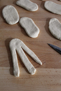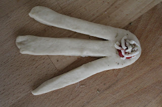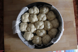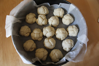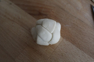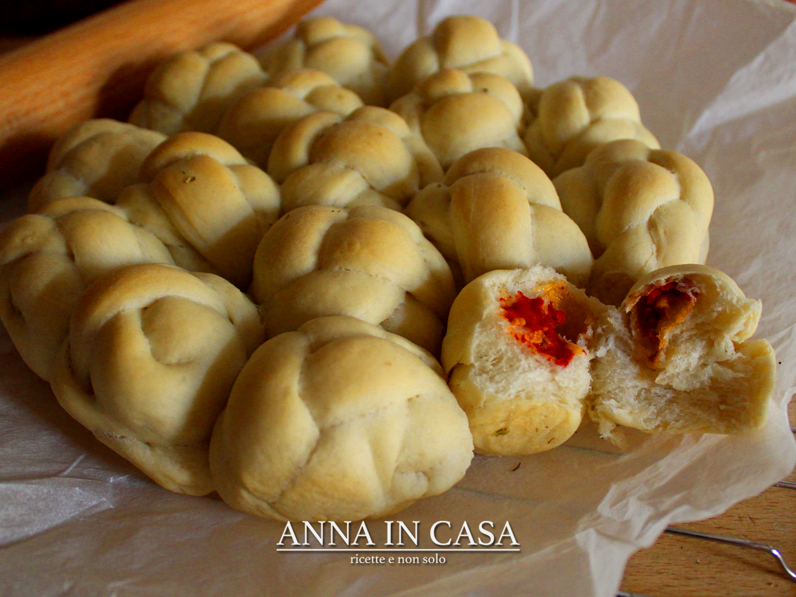 Mi sono divertita a modificare un po’ la ricetta non tanto negli ingredienti quando nella forma: invece dei soliti panini lievitati, che in cottura si uniscono dando forma alla classica torta, ho voluto preparare delle trecce che arrotolate formano un nodino. Anche in questo modo i nodini si unisono n cottura ma dando un po’ di movimento alla torta.