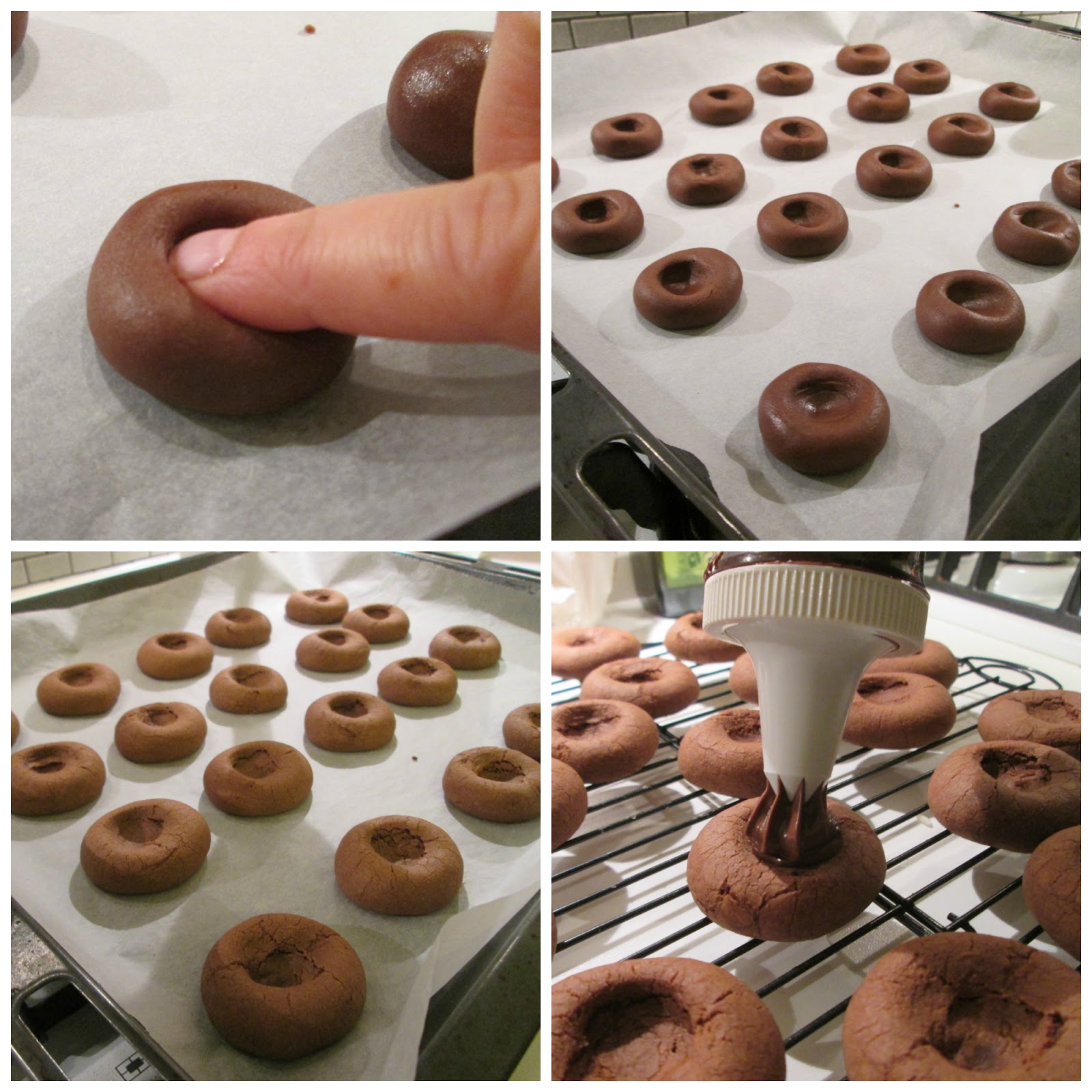 - Sfornate i vostri biscotti e lasciateli raffreddare su una gratella per dolci…una volta freddi riempiteli, con l’aiuto di una siringa per dolci o una sac à poche, con un pochino di crema di nocciole