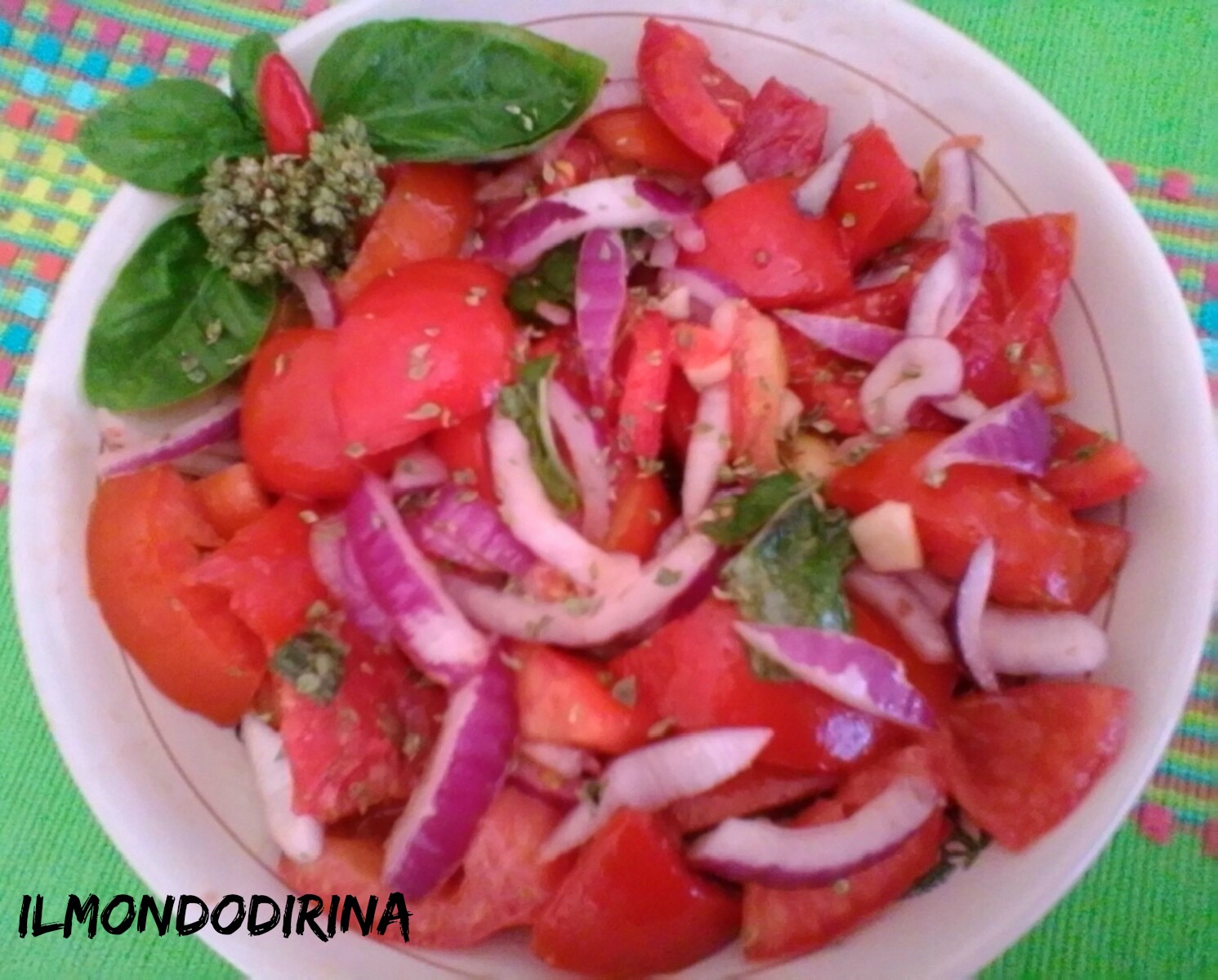 Lavate i pomodori, tagliateli quindi a metà senza togliere i semi e poi a spicchi o a pezzi irregolari. Versateli in una ciotola e unitevi la cipolla tagliata a spicchi sottili, l’aglio sfilettato, le foglie di basilico e il peperoncino. Salate, spolverate di origano e cospargete con abbondante olio evo. Mischiate bene e fate insaporire l’insalata qualche minuto prima di servirla. La scarpetta è d’obbligo e con pane casereccio.