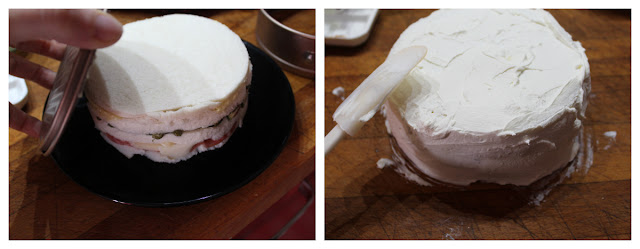 Trascorso questo tempo, estraete la torta dallo stampo e ricopritelo con uno strato uniforme di philadelphia, aiutandovi con una spatola.