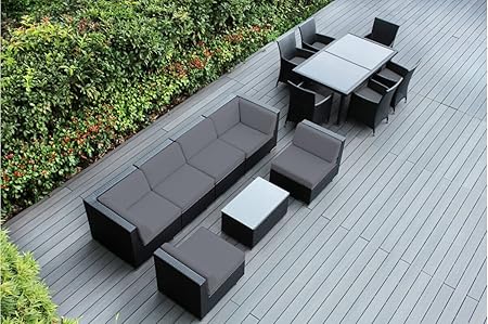 Genuine Ohana Outdoor Sectional Sofa And Dining Wicker Patio Furniture Set 14 Pc Set With Free Patio Cover Gray