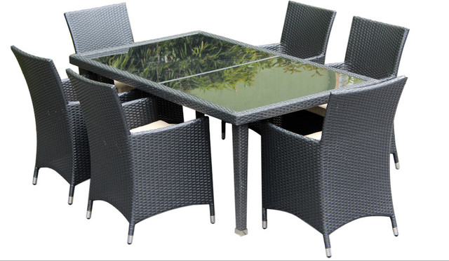 Ohana 7 Piece Dining Set Cushion Beige Black