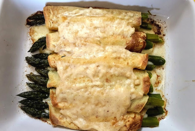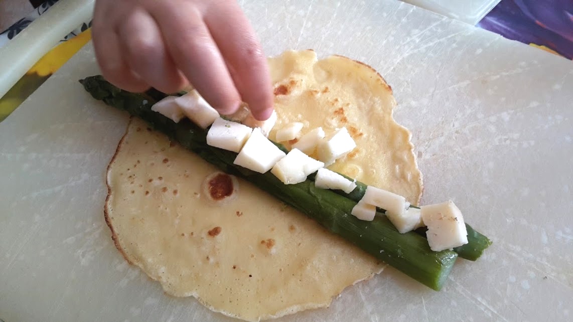 3 asparagi per crepe e qualche dadino di toma..